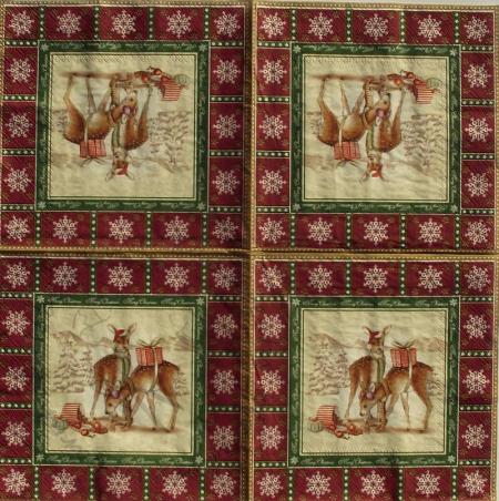 Szalvéta Szarvasok ajándékokkal, bordó kerettel
