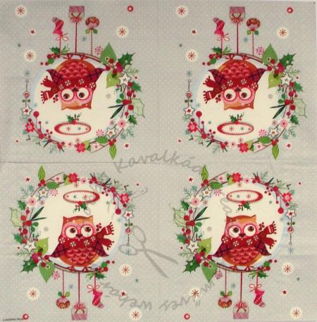 Szalvéta Színes bagoly téli koszorúban