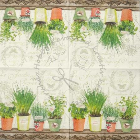 Szalvéta K Kerti fűszerek mintás cserepekben