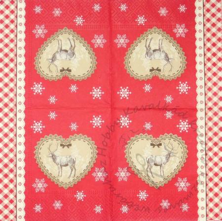 Szalvéta Szarvas szívben, piros alapon