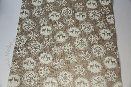 Nyomott mintás juta anyag 29 cm széles, 50 cm - Csipkés hópelyhes