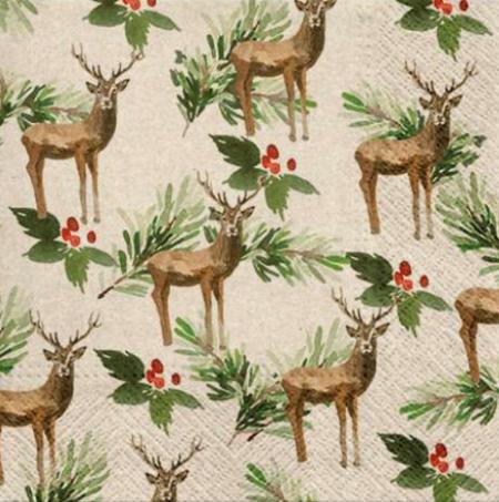 Szalvéta - 20200 Szarvasok ágakkal drapp alapon