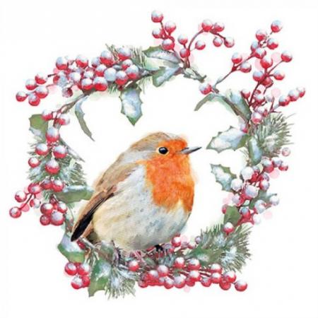 Szalvéta - 15535 Vörösbegy piros bogyós koszorúban