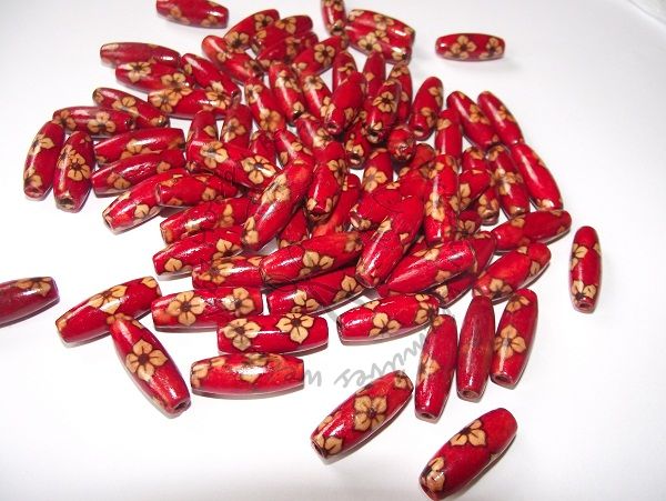 Fa gyöngy K nagy hordó piros virágos 25 g