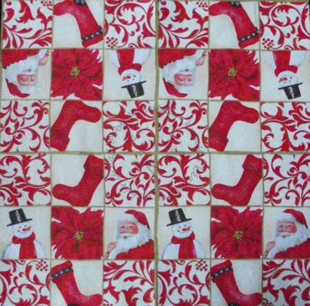 Szalvéta piros díszek kockákban