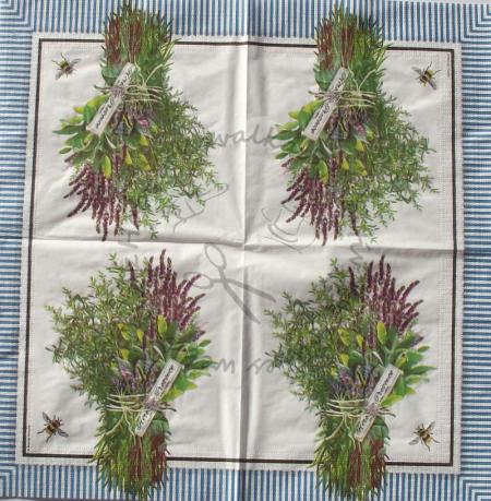 Szalvéta K fűszercsokor kék csíkos szegéllyel