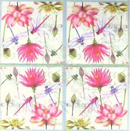 Szalvéta K szitakötők rózsaszín virágokkal