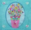 Szalvéta Vegyes virágok szivecskés kaspóban