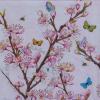 Szalvéta Virágzó cseresznyeág sok pillangóval, rózsaszín