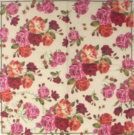 Szalvéta Színes vegyes rózsacsokrok drapp szöveten