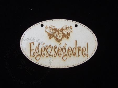 Fa figura ovális tábla - Egészségedre! szőlővel, kunkori betűkkel