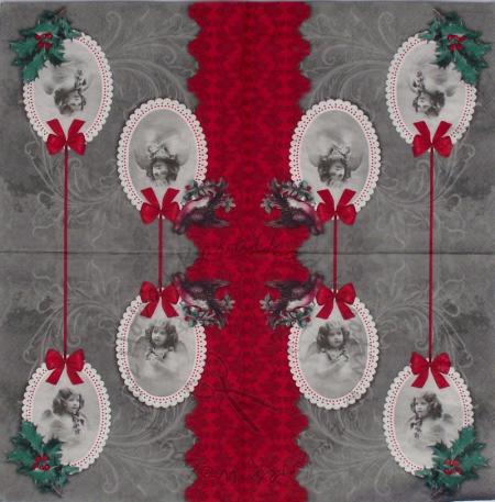 Szalvéta Angyalkák ovál csipkés keretben, szürke