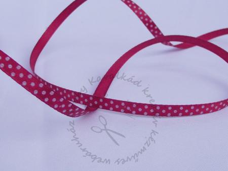 Szatén szalag 6 mm - Meggypiros alapon fehér pöttyös