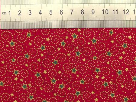 Megnevezés: Nyomott mintás vászon, prémium kb. 30 x 70 cm Piros alapon arany kontúros zöld csillagok