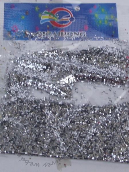 A tasak tartalma kb. 4,5 x 4,5 cm-es tasakban kb. 0,2 g normál szemcséjű csillámpor