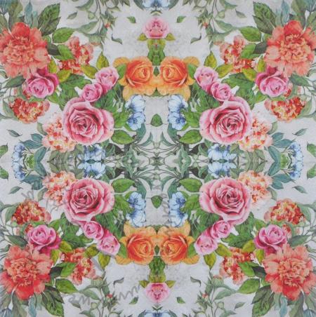 Szalvéta Rózsás virágkavalkád szürke alapon