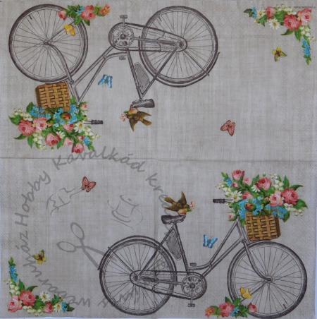 Szalvéta K Biciklikosárban színes rózsacsokos