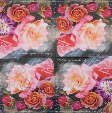 Szalvéta Színes rózsák fehér íráson