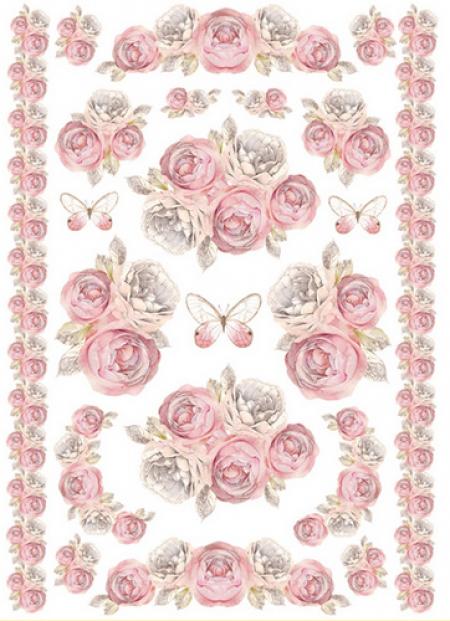 Rizspapír 21 x 29 cm - Pasztell rózsaszín rózsák
