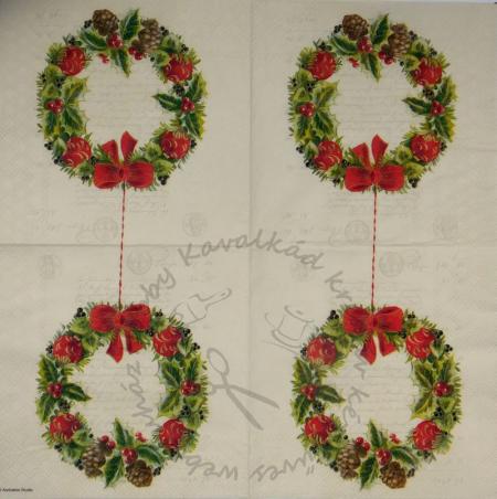 Szalvéta Koszorú piros masnival, írással