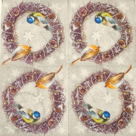 Szalvéta Cinke és vörösbegy téli koszorún