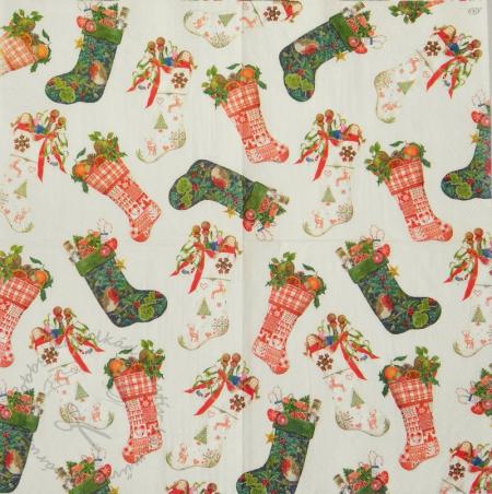 Szalvéta Színes karácsonyi zoknik ajándékokkal