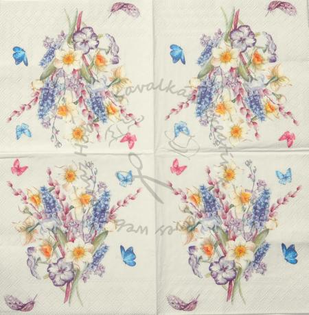 Szalvéta K Tavaszi csokor pillangókkal pasztell lila alapon