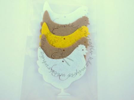Filcfigura csomag - 1 sárga, 2 barna, 2 fehér tyúk