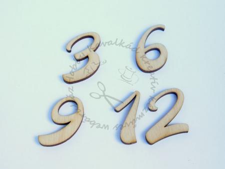 3 cm magas óraszámok: 3, 6, 9, 12.