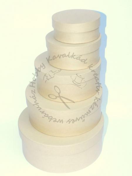 kicsi: 10,5 cm Ø, magassága: 4,4 cm2. 12,5 cm Ø, magassága: 5,5 cm3. 15,4 cm Ø, magassága: 6,5 cm4. 18 cm Ø, magassága: 7 cmLegnagyobb: 20,5 cm Ø, magassága: 8 cm