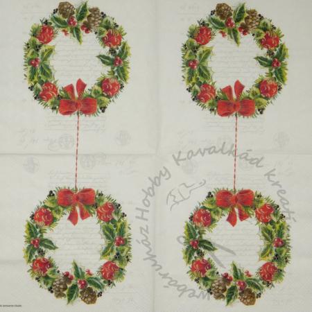 Szalvéta Piros masnis koszorú írásos háttérrel