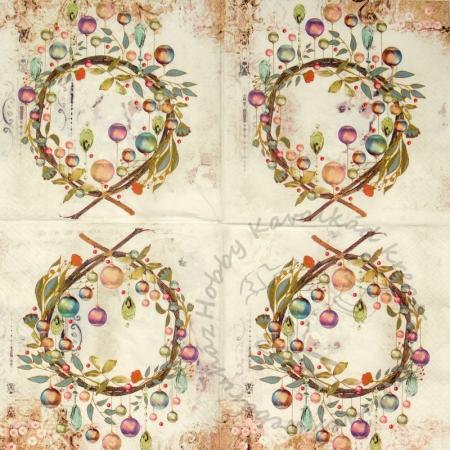 Szalvéta Díszekkel díszített vesszőkoszorú
