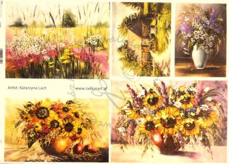 Rizspapír A3 - Festmények, virágos