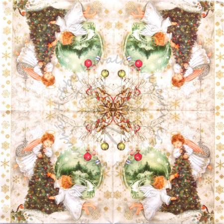 Szalvéta Két angyalka fát díszít