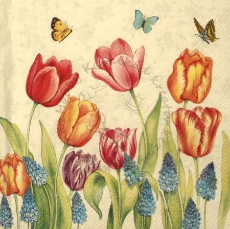 Szalvéta K - 11525 Tulipánok, gyöngyikék pillangókkal