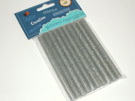 Ragasztó rúd (ragasztópisztolyhoz) - 7,2 mm, 10 db, Ezüst glitteres