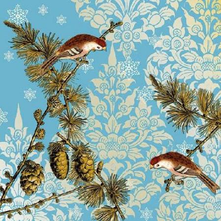 Szalvéta 10790 Madárkák fenyőágon világoskékmintás háttérrel