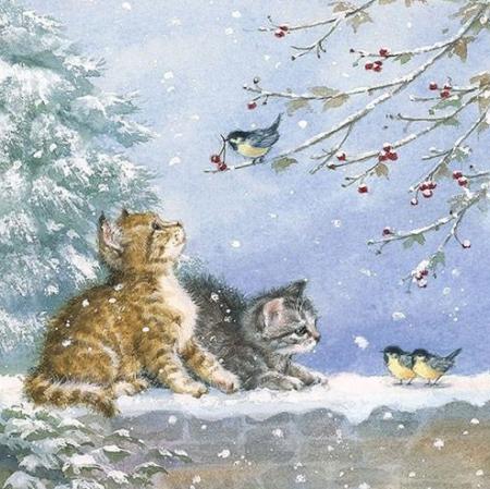 Szalvéta 11900 Cicák hóban cinkékkel