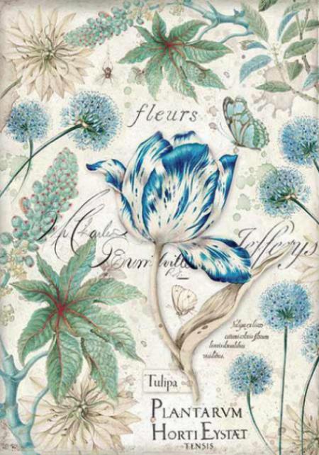Rizspapír 21 x 29 cm - Botanika, kék tulipánok