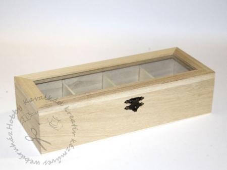 Fa doboz 4 rekeszes, hosszúkás, átlátszó tetővel (355875)