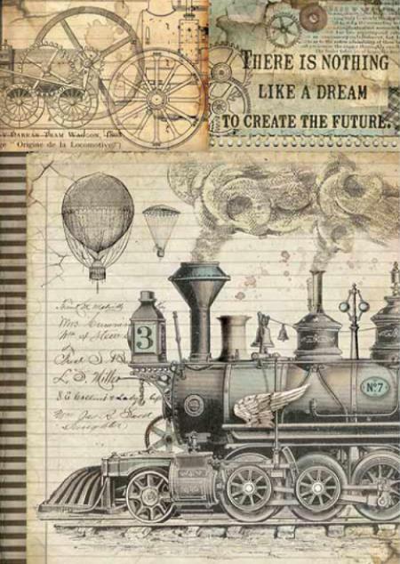 Rizspapír 21 x 29 cm - Gőzmozdony, léghajók