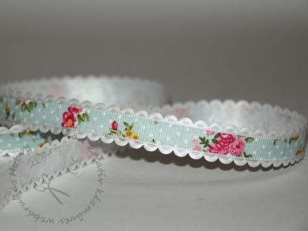 Mintás ripsz szalag, 16 mm széles - Pasztel kék alapon rózsák