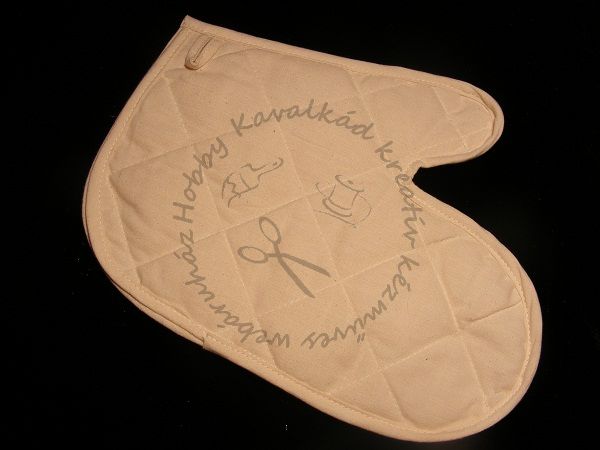 Natur vászon anyagból készült steppelt edényfogó kesztyű. Méretei: 28 x 20 cm.