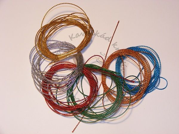 A csomag tartalma 6 különböző metál színű (arany, ezüst, vörösréz, piros, zöld, kék), 2-2 m hosszú zsinór. Kiválóan alkalmas dísztárgyak felfüggesztésére, csomagolásra, üdvözlőkártyák akasztójának.
