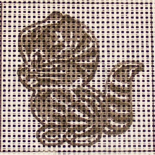 7 x 7 cm. Duplaszálas, fehér kanavára festett gobelin fonal nélkül. 44 öltés / 10 cm.