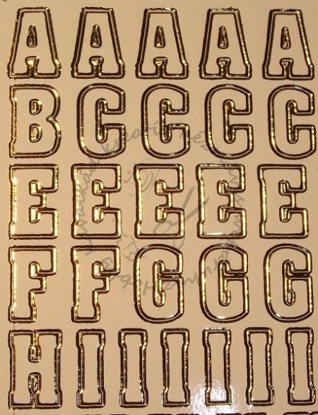 Az egész lap mérete: 16 x 20 cm. A betűk magassága: 12 mm. 26 féle betű + pontok, vesszők, kérdő- és felkiáltó jelek. A betűk körvönala aranyozott.