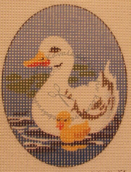 előnyomott gobelin - kacsa, kiskacsával ovális képben