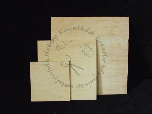 4 mm vastag nyírfa rétegel lemezből készült 20 x 20 cm-es falap. Kiválóan díszíthető, szalvétázható, festhető, pácolható, pasztázható (ásvány, terrakotta pasztával). A nyírfa világos színe, puhasága, illetve az erezetlen felület miatt kiválóan égethető pákával.