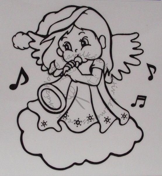 Kontúrozott fólia angyalka kürttel