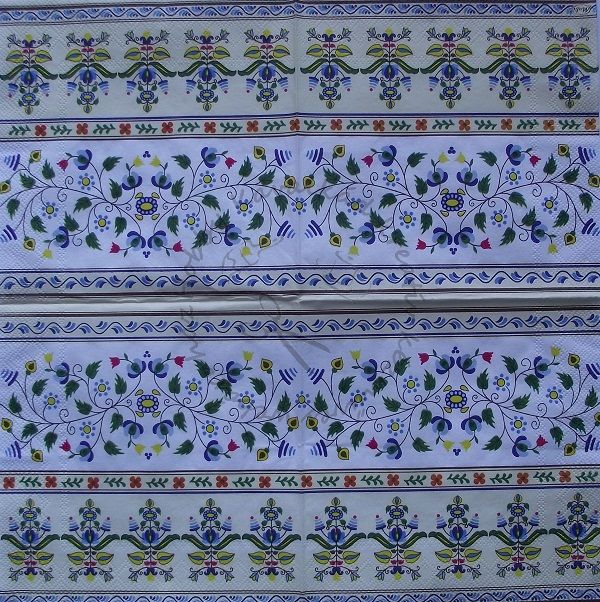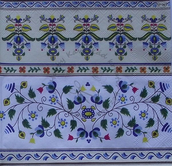 Szalvéta soros népi motívumok bézs-kék